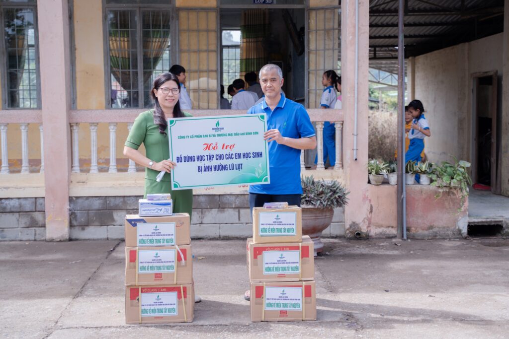 Cô Võ Thị Thu Thủy – Đại diện nhà trường cùng các em học sinh không khỏi vui mừng khi tiếp nhận quà tặng từ BSPPT. Cô chia sẻ: Trận lũ lịch sử đã khiến nhiều cơ sở vật chất của trường hư hỏng nặng, sách vở, đồ dùng học tập của giáo viên và các em đã bị cuốn trôi hoàn toàn. Ngay sau khi tiếp nhận số đồ dùng học tập từ các đoàn cứu trợ, nhà trường sẽ phân phát đến cho các em học sinh, đồng thời, đại diện nhà trường cũng gửi lời cảm ơn sâu sắc đến lãnh đạo và người lao động BSPPT đã đồng hành, sẻ chia cùng với Ban Giám hiệu nhà trường vượt qua giai đoạn khó khăn này.